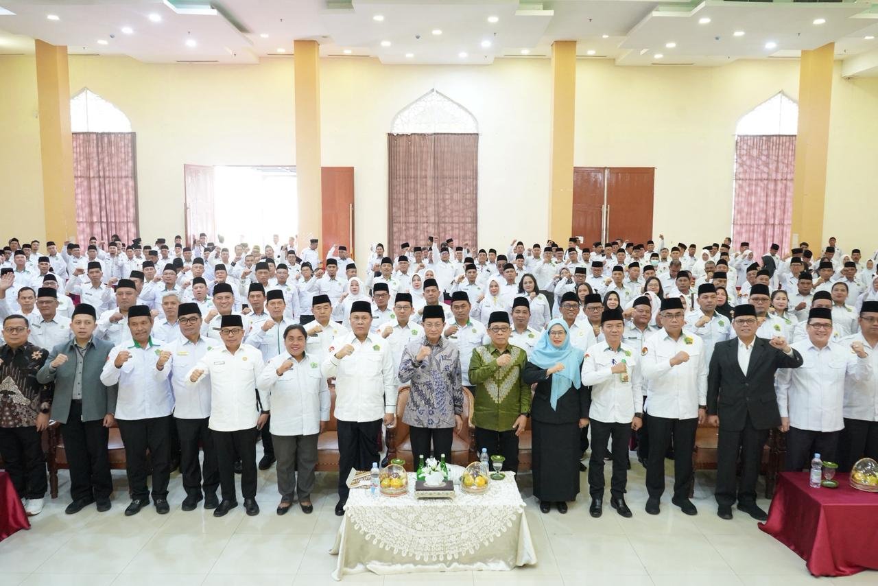 Kegiatan dihadiri seluruh pejabat Kanwil Kemenag Sumut, Kepala Kantor Kementerian Agama se-Sumatera Utara, Kepala MAN, MTsN, MIN, KUA, serta jajaran Pokja Penyuluh, Penghulu, dan Pengawas.*