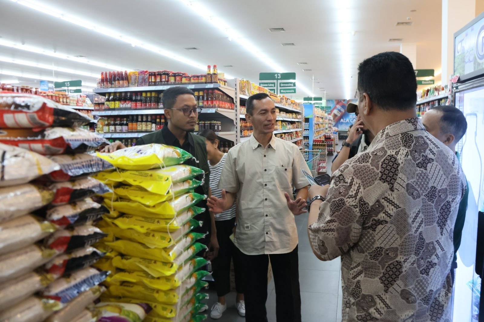 Petugas juga berdialog dengan pedagang dan pengelola toko untuk menilai perkembangan harga, kondisi stok, serta kelancaran distribusi barang dari distributor ke tingkat pengecer.