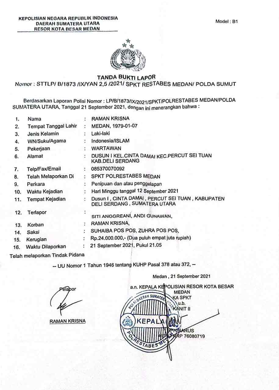 Raman mengungkapkan bahwa ia telah membayar iuran sebanyak 15 kali, dengan nominal Rp 1 juta per bulan untuk dua nomor arisan. Total kerugian yang dialami oleh Raman adalah Rp 24 juta.