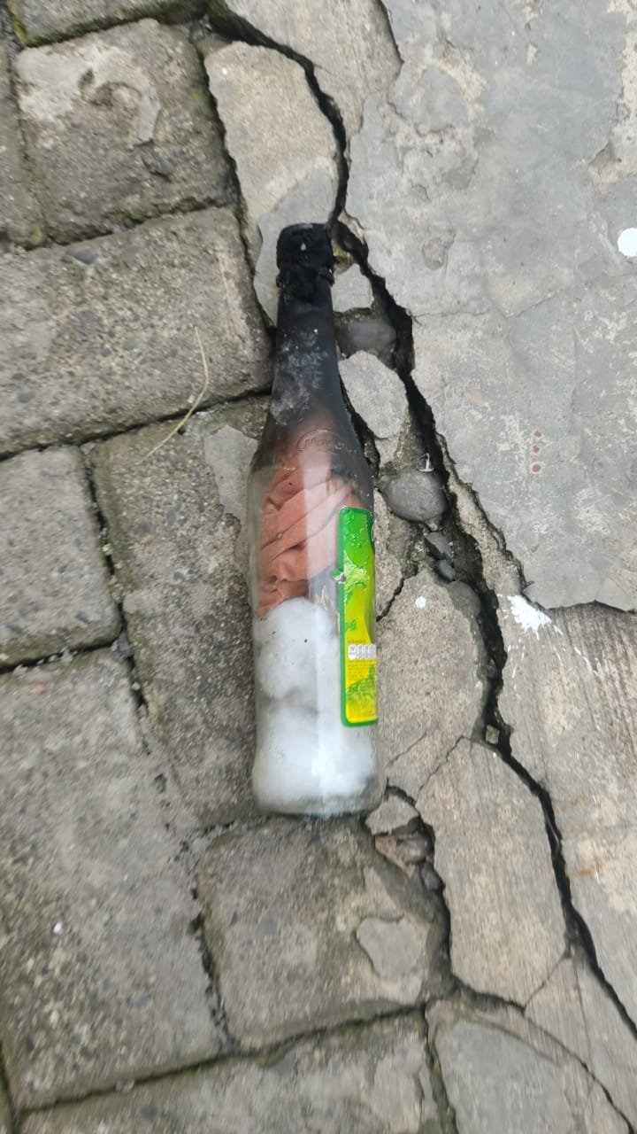 Ternyata, tidak berhenti di situ. Pada Rabu (8/10) pagi, mereka mendapati bom molotov di atap gudang. Diduga bom molotov dilemparkan pelaku untuk membakar gudang. Syukurnya molotov gagal meledak dan membakar gudang.