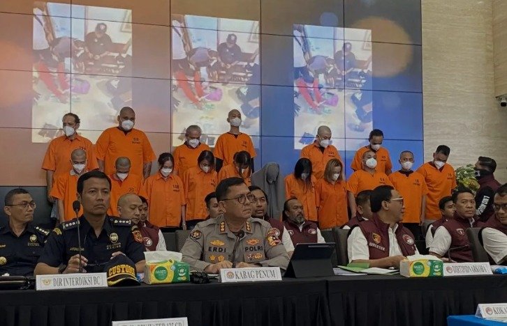 Para tersangka diduga tergabung dalam enam jaringan peredaran narkoba, sementara tujuh orang lainnya masih berstatus buron.