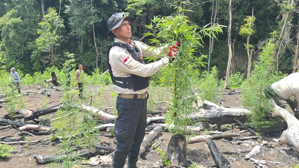 Dalam operasi tersebut, total ladang ganja yang ditemukan mencapai sekitar 20 hektare yang tersebar di beberapa titik dengan estimasi hasil panen hingga 50 ton.
