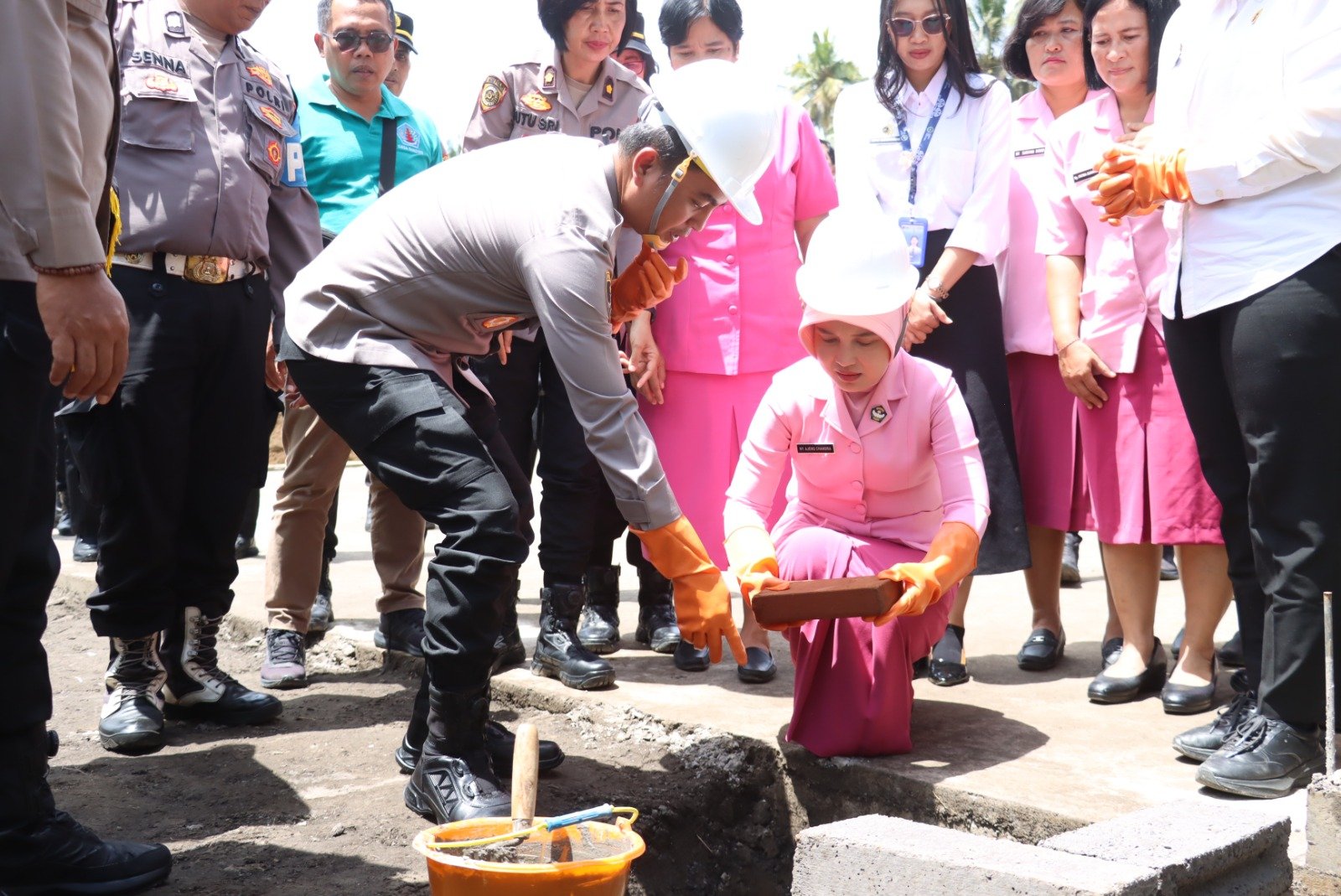 Acara peletakan batu pertama dilakukan secara simbolis oleh Kapolres Gianyar, didampingi Ketua Yayasan Kemala Bhayangkari Polres Gianyar, Ny. Ajeng Chandra, serta pejabat utama dan undangan yang hadir.
