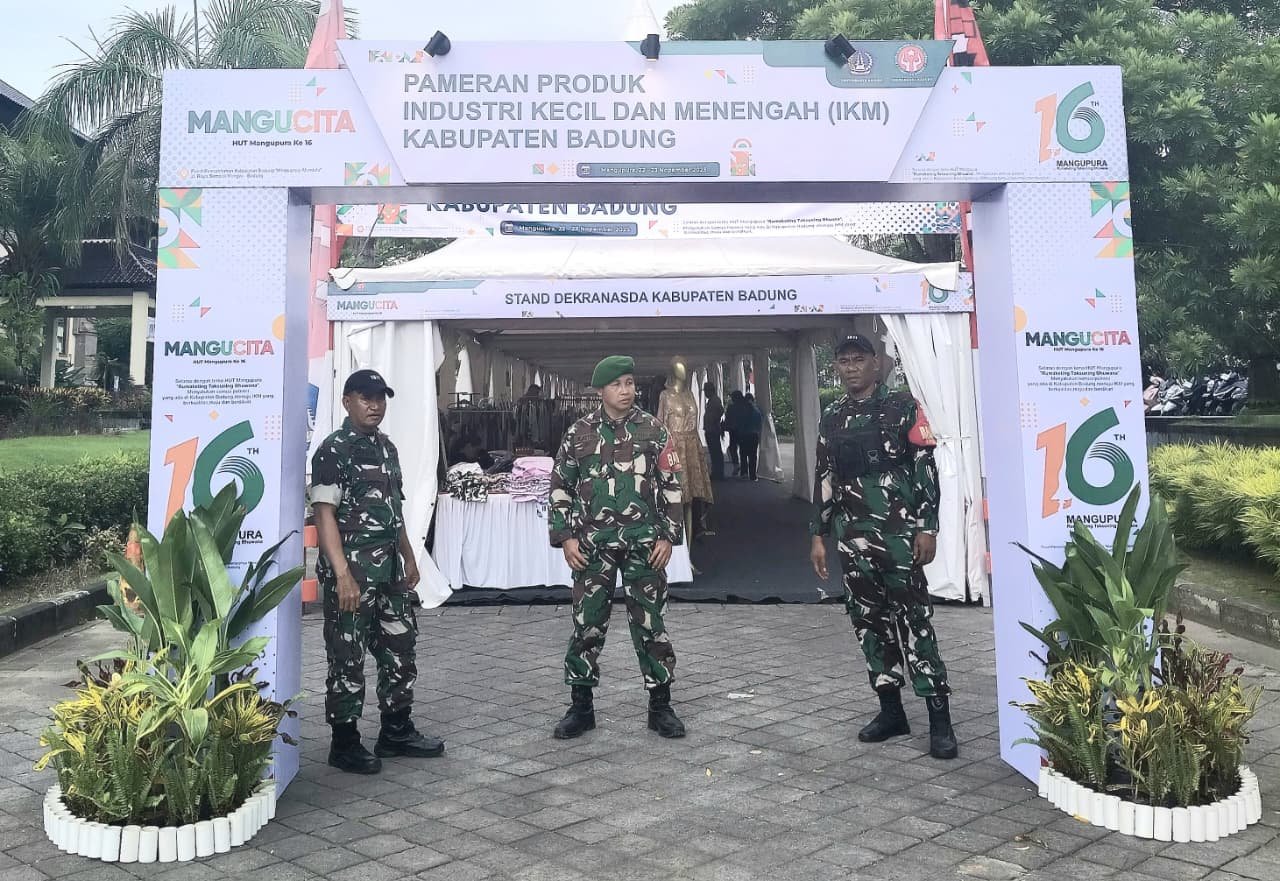 Sebanyak 25 personel Kodim 1611/Badung diturunkan dan ditempatkan di titik-titik strategis di sekitar Puspem Badung untuk memastikan acara berjalan aman dan lancar.