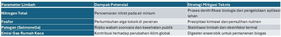 Kedua, investasi dalam teknologi mitigasi lingkungan seperti digester anaerobik dan lahan basah buatan harus diprioritaskan. Hal ini tidak hanya penting untuk melindungi ekosistem lokal dari beban polutan nitrogen dan fosfor, tetapi juga dapat memberikan nilai tambah ekonomi melalui pemanenan biogas dan pupuk yang aman. Pemerintah perlu menyediakan skema pembiayaan hijau atau insentif pajak bagi peternakan yang berhasil mengimplementasikan teknologi nol-limbah.