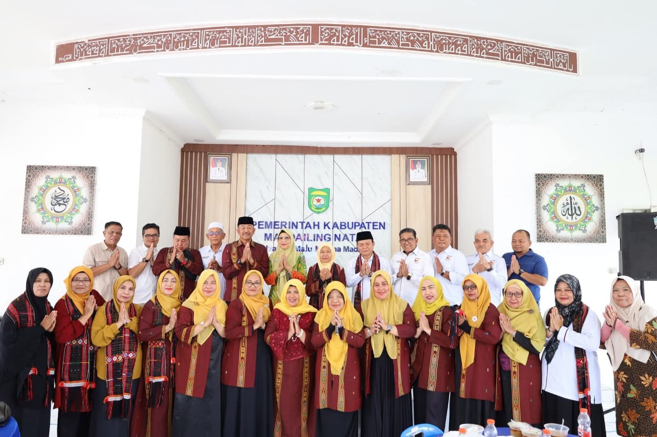 MADINA - Bupati Mandailing Natal (Madina) H. Saipullah Nasution menerima kunjungan pengurus DPD Ikatan Keluarga Nasution (IKANAS) Provinsi Riau di Sopo Godang, Pendopo Rumah Dinas Bupati, Desa Parbangunan, Kecamatan Panyabungan, Minggu (20/7/2025).
