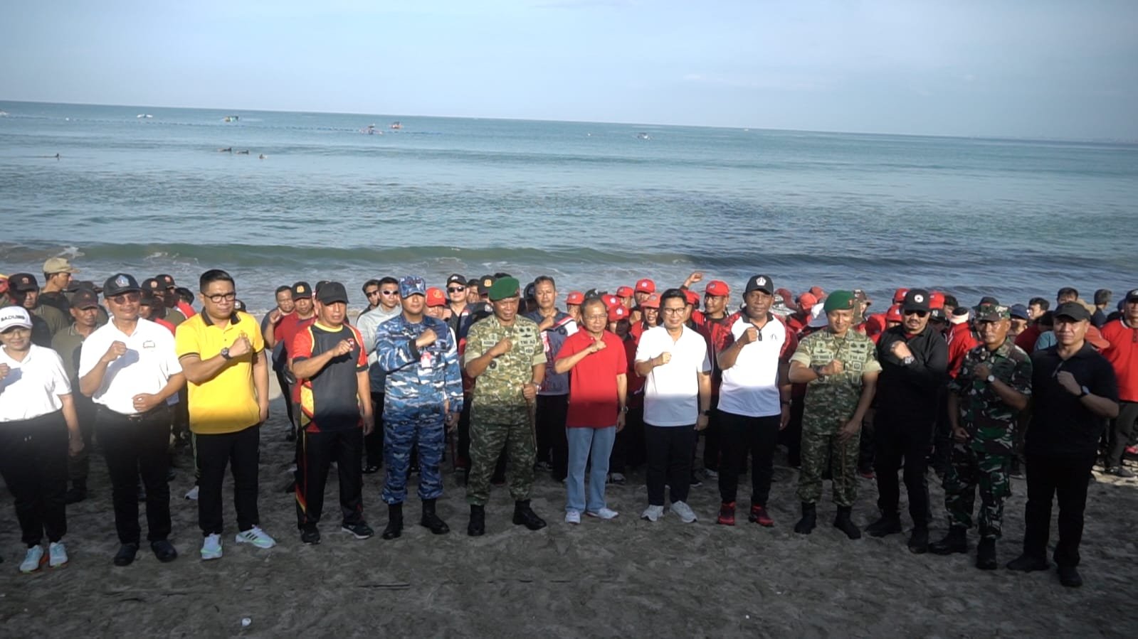 BADUNG – Gubernur Bali Wayan Koster memimpin Apel Kesiapan Penanganan Sampah Kiriman yang melibatkan TNI, Polri, pemerintah daerah, relawan, komunitas lingkungan, dan masyarakat umum di Baruna Shelter, Pantai Kuta, Kabupaten Badung, Minggu (2/11) pagi.