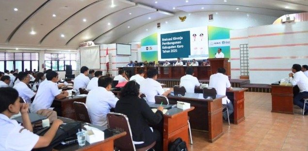KARO – Pemerintah Kabupaten Karo menggelar rapat evaluasi kinerja pembangunan tahun 2025 di Aula Kantor Bupati Karo, Jalan Letjen Djamin Ginting No.17, Rabu (7/1/2026).