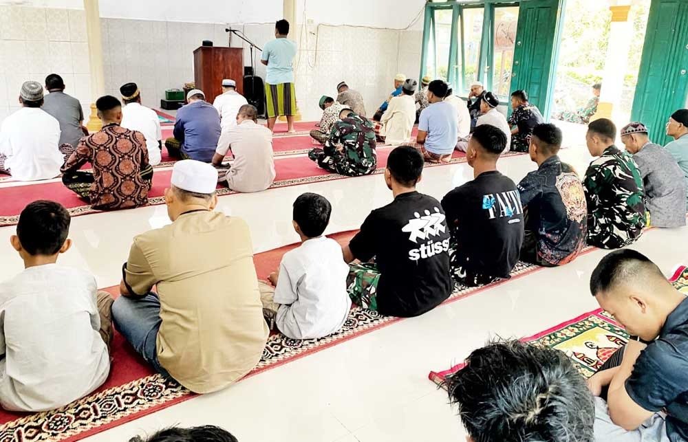 Personel Satgas saat sholat Jumat di sebuah masjid, di sela kegiatan TMMD ke-127 Kodim 0207/Sml.