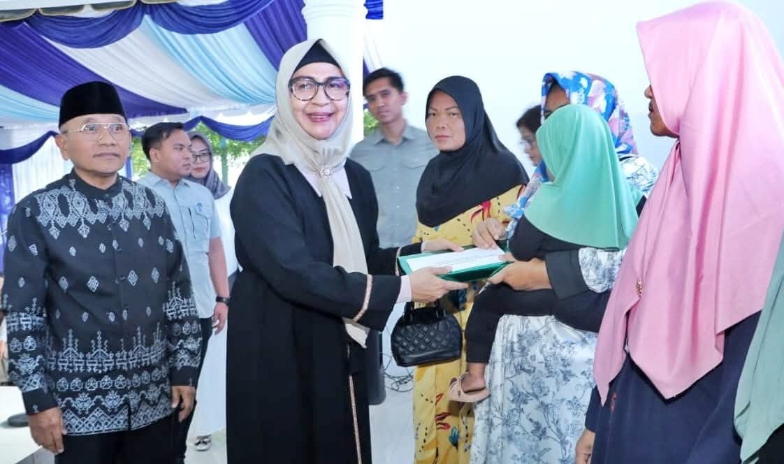Bantuan diserahkan langsung oleh Bupati bersama Forkopimda, Ketua TP PKK, Ketua DWP, dan tokoh agama setempat.