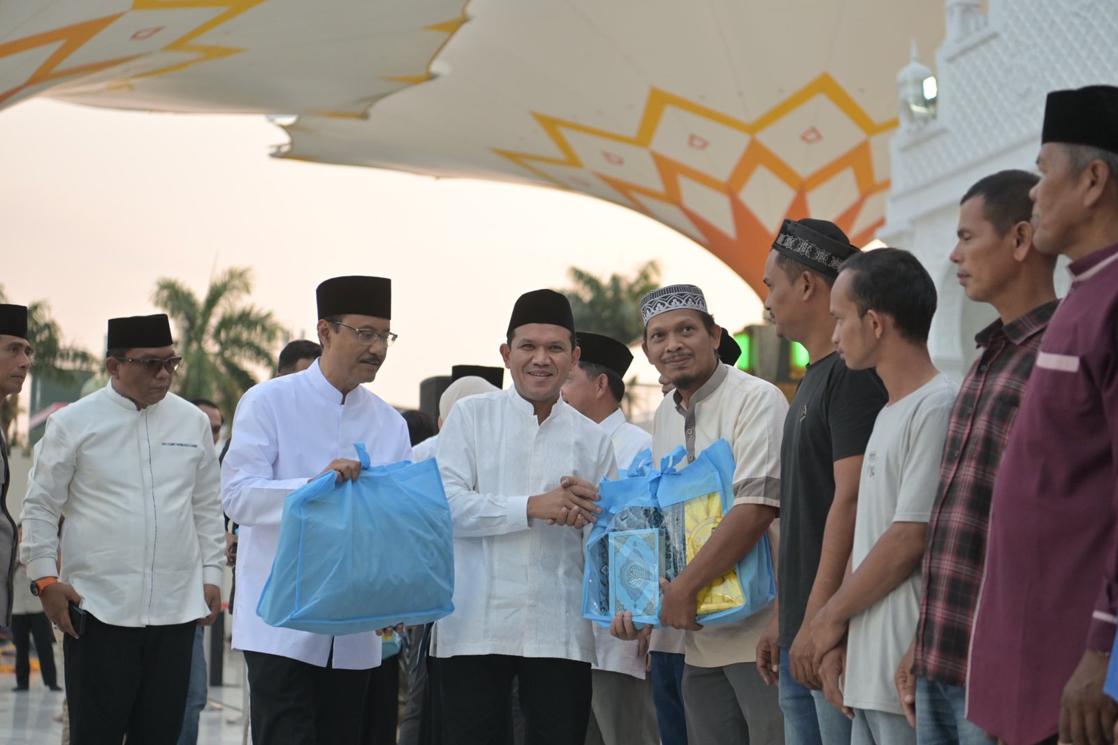 Usai buka puasa, seluruh pejabat dari pemerintah pusat dan Aceh melanjutkan shalat magrib, isya, dan tarawih berjamaah di Masjid Raya Baiturrahman.*