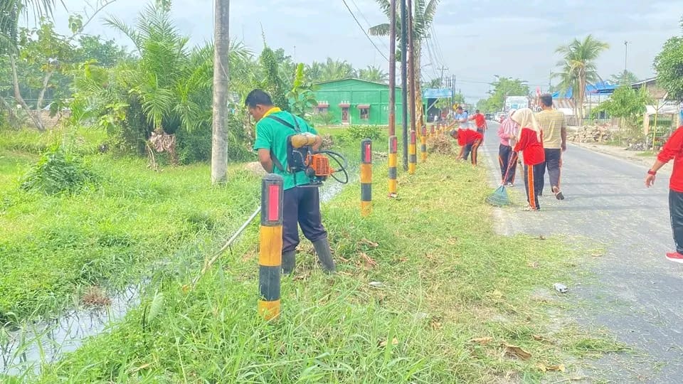 BATU BARA -Nuansa kebersamaan dan semangat gotong royong tampak begitu kental di Dusun VI, Desa Pahang, Kecamatan Talawi, Kabupaten Batu Bara. Kegiatan gotong royong yang melibatkan Kepala Desa Pahang Faisal, A.Md, perangkat desa, para kepala dusun, serta mahasiswa Kuliah Kerja Nyata (KKN) dari Universitas Islam Negeri Sumatera Utara (UINSU) berlangsung dengan penuh antusias.