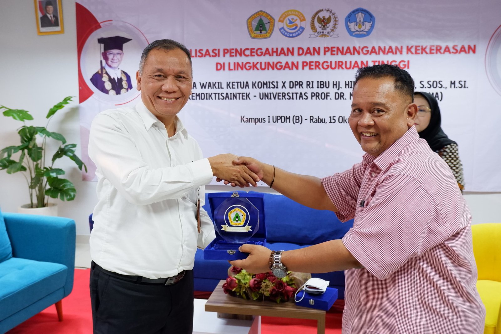 Hadir sebagai narasumber utama, Hj. Himmatul Aliyah, S.Sos., M.Si, Anggota DPR RI dan Wakil Ketua Komisi X, memberikan pengarahan mengenai pentingnya pelaksanaan regulasi pencegahan kekerasan di perguruan tinggi.