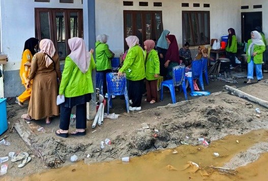Selain membantu, mahasiswa juga berinteraksi langsung dengan warga untuk mendengarkan keluhan dan kebutuhan yang masih diperlukan selama masa pemulihan.