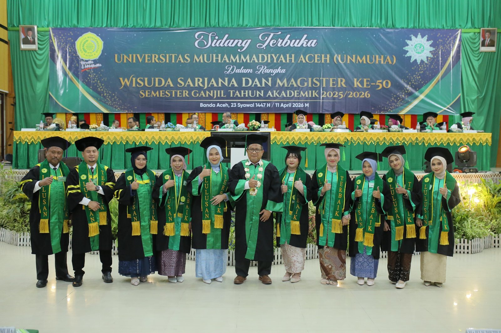 BANDA ACEH – Universitas Muhammadiyah Aceh (Unmuha) mengukuhkan 262 wisudawan dalam Sidang Senat Terbuka Wisuda Sarjana dan Magister ke-50 Semester Ganjil Tahun Akademik 2025/2026 yang digelar di UCC Ahmad Dahlan, Sabtu, 11 April 2026.