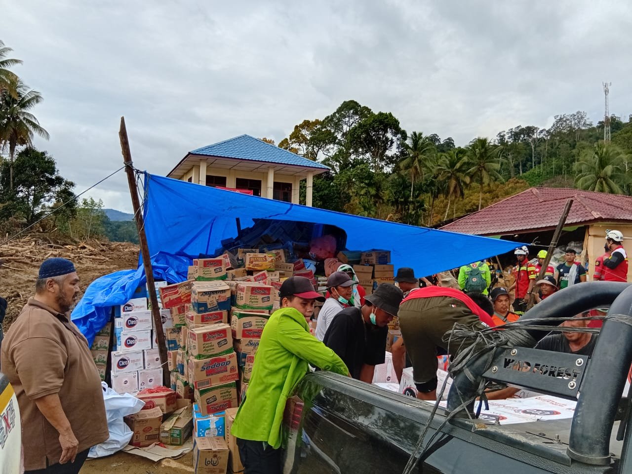 Universitas Aufa Royhan (UNAR) menyalurkan bantuan air mineral untuk masyarakat yang terdampak bencana banjir dan longsor di wilayah Hutagodang, Kecamatan Batang Toru, Kamis, 4 Desember 2025. (foto: Ist/BITV)
