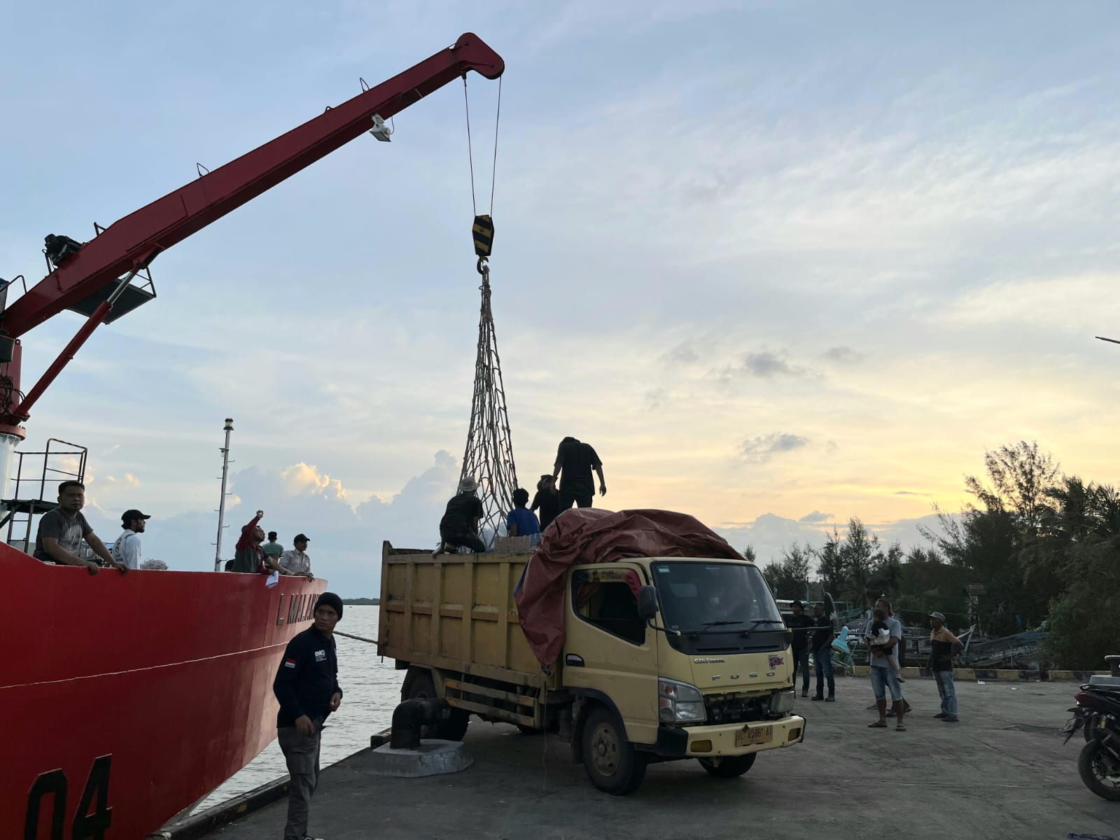 Relawan Ikatan Cendekiawan Muslim se-Indonesia (ICMI) Aceh berhasil berlabuh di Pelabuhan Kuala Langsa dengan selamat, Senin (8/12/2025). (foto: Ist/BITV)