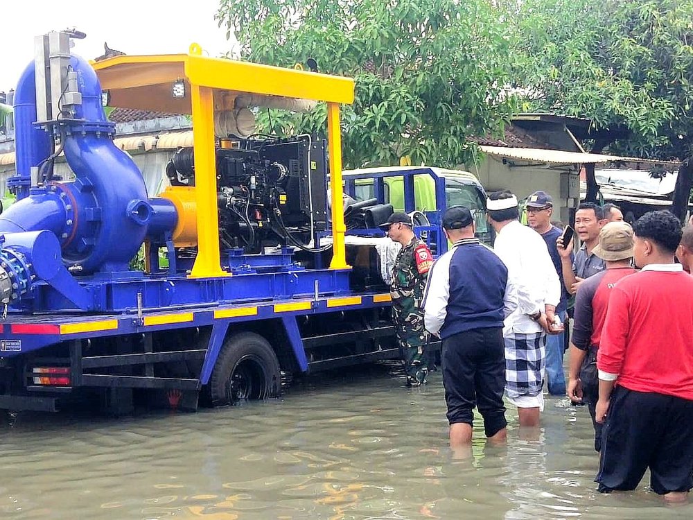Aparat gabungan masih melakukan penyedotan air menggunakan mesin pompa untuk mempercepat surutnya genangan dan menyalurkan air ke saluran drainase di sekitar lokasi.